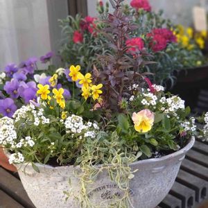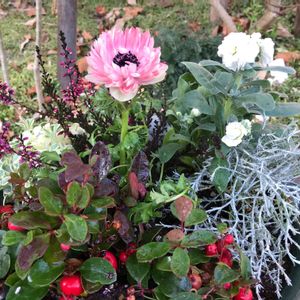寒さに弱いお花とバトンタッチして、 冬の寄せ植えに~🎶~💗~💗~💗 あれ~😱 シレネさん、大きくなりすぎた‼️ アルテミシアも、大きいよ~🌿 バランス悪すぎ~💦 サザンクロス🌸は休暇中だし、 寄せ植えって、難しいですね😣💧