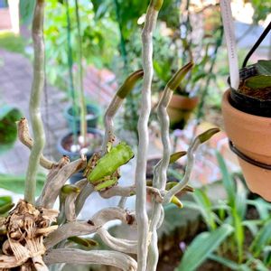 🍀オンシジウム&キャール🍀 コルク付けしたオンシジウムにキャールが穴ほじって住みついたかな👀⁉️ リードが成長途中で溶けちゃって💦💦 バックバルブからふたつ新芽が出で成長してます😊‼︎ むしろラッキーだったかなぁ〜😘