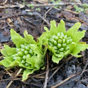 今日のお花はフキ❗️ 実はネタ切れで、どーしよーかと思っていたんです😅あー、去年見たよねってことで…昨年3月に行った長野県白馬村で出会った蕗の薹を紹介します。 この日は、安曇野よりもっと間近で北アルプスを眺めたいと白馬に行くことにしていたら、生憎のお天気。まいっかと車を走らせました。白馬岳などの北アルプス北部の山々は雲の中。地元の神社にあいさつして、白馬駅の周辺を見て回り、道の駅で蕗の薹や野甘草、野沢菜を買いました。蕗の薹をお安く買えたことで、気分はウキウキ🎶上機嫌で、千国街道を逸れて水田の向こうの道を走りました。天気が悪くても一応風景を撮ろうと思い、道沿いの駐車場に停めて何枚か撮って車に戻ろうとしたその時、何やら柔らかな緑色の小さな物体を発見しました。近付いて見ると紛うことなき蕗の薹じゃあーりませんか❗️え…さっき買ったよ😨多少形は悪くても蕗の薹だよ。そー言えば、レジ袋を持った地元の人らしき小父さんが歩いてたな🤔しばらく道沿いを歩けば数も揃いそうだねぇ😄いや待てっ、ここは道路敷だ。オレの所有地じゃないぞ。しかも、オレは他所者だ。まあ、道の駅で手に入ったんだから、それで良しとしよう。そんなこんなで、取らずに写真を撮った次第です。 ①白馬村の蕗の薹 ②白馬村の蕗の薹(これは再掲です) ③道の駅で買った蕗の薹など ④白馬村の眺め