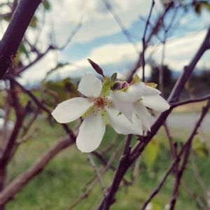 会社の駐車場に植えられている まだ小さな 桜の木🌸 疎らに お花が咲いています Σ(・ω・ )