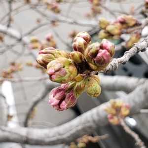 3月27日にも 投稿させて 頂きました 会社の桜🌸 約1週間が経ち だいぶ ピンク色の蕾が見えてきました