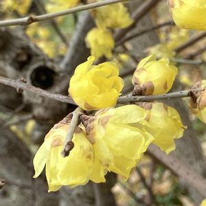 いつも梅を観に行く「大阪城梅林」 今年はロウバイがどうしても観たくてひと足お先に行って来ました。 まだ硬い蕾の梅の木々の合間に黄色い花を咲かせたロウバイの木は目立っていてすぐにあちこちに見つけることが出来ました。 こんなにあったなんて知らなかった〜💛 透き通るような花びら、まぁるい蕾も愛らしく、ふんわり甘い香りも堪能出来ました☺️ 着いた時は曇ってたけど、だんだん青空も見えてきて、気持ち良かったです。 まだまだ硬い蕾だけど、「今年の梅」に選ばれた「道知辺」という品種の木も発見💡 また、花が咲く頃に来てみたいな。