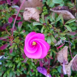 おはようございます🌿 日が差すと輝くような濃いピンクのお花💗をこぼれるように咲かせます🌿 親戚の家で、可愛い花姿です💕 3枚目は、花友さんに頂いた八重咲きのオキザリスです🌿 小さなお花ですが、存在感があります💕