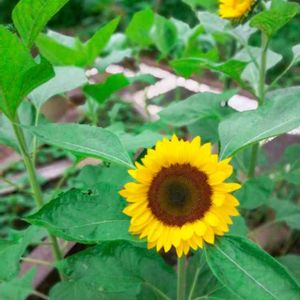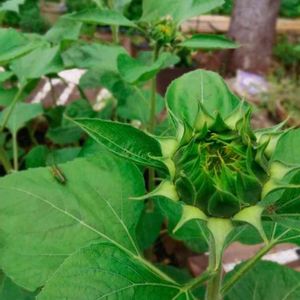 少し前にミニひまわりの苗を花壇へ移しました。 花壇だと40~60センチほど育つようです。 ちなみにぼんやり後ろに写ってるのはゴッホのひまわりですね。