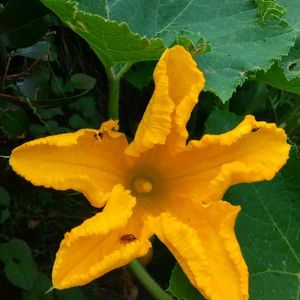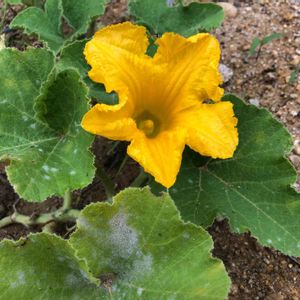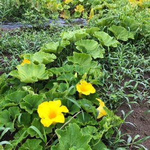 こぼれ種で育っているカボチャ🎃 これは雄花ですが雌花も咲いて終わってました😆