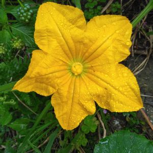 おはようございます😌 豪雨被害…心よりお見舞い申し上げます😰 連日の雨の中、かぼちゃの花が咲きました🌼
