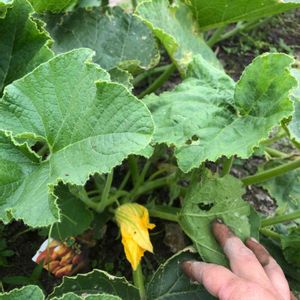 畑に捨てたカボチャの種が、いつのまにか花を咲かせ、実をつけてました。これから秋冬なのに、どうしましょう😱💦