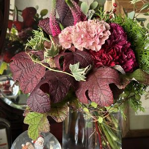 庭の紅葉した、カシワバアジサイの葉っぱを使って、ブーケ作りました♪