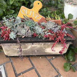 壊れた七輪に寄せ植え 火祭りで炎🔥の演出😅