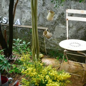 以前ここに置いていた 私がアイコンにもしている木製の椅子が朽ちてしまったので 新しいモノに(古いモノ?)替えました。 今度のは 見た目より重めで頑丈なやつ🪑 昨日、仲良くしている元造園業のおっちゃんに 「これスワッグにしーや。」 とレモン色のミモザ(アカシアブリスベーン)をもらいました。(pic①の下部と②) 先日もご近所さんにギンヨウアカシアをもらったばかりで😊ミモザ𖡼.𖤣𖥧ここ数年買ってないです。皆さん割と剪定枝の処理に困っているようで、下手したら道を歩いていると知らない人からも貰える。関西の田舎のいいところですね〜。よく 関西人はケチって言われるけど、全然そんなことないです。皆さん、とっても人がいい♡😊