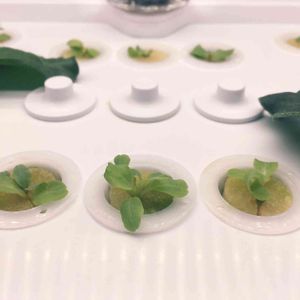 水耕栽培のアイスプラントがここまで大きくなりました☺️無事に育ってるのが3つと右下に写ってる小さい小さい芽が出たばかりの子1つです。発芽率悪くて何度種をセットし直した事か😅💦 このまま大きくなって収穫できれば良いのだけれど肝心のプチプチがほぼ無いのですよね💧塩水あげなきゃやっぱりダメなのかな🤔 同時に育ててた芽キャベツは発芽率良すぎてちゃんと育ってきたので今は外で管理中です👍