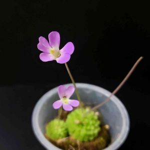 ピンギキュラ エセリアナ ↑ずっと前から欲しかったんですよ😆 日頃からチランジアばかり集めてるので、入手をずっと先送りにしていました😅 それはさておき、こいつの面白さを少し解説。 メキシコの山岳地帯原産で、別名「姫足長ムシトリスミレ」とも言います。 名前にスミレとありますが、近縁関係は無く、タヌキモ科の食虫植物です。 鱗片状に展開する葉はとれやすく、エケベリアのように葉挿しで殖やすこともできます。