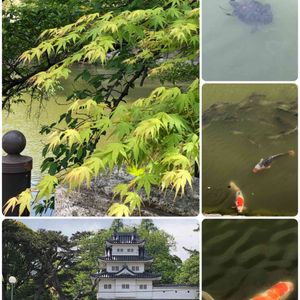 津お城公園を散歩中😃 濠に枝垂れるモミジが新緑で初々しくきれいでした〜🥰 オマケにお濠には、亀、鯉も泳いでいてー💕 今日は5月5日の子供の日 薫風にたなびく鯉の代わりに水辺の鯉で💦😅 水辺の水曜日に参加させて頂きます😊 津城と言っても平城で、信長の弟の織田信包や藤堂高虎の居城でした。隅櫓だけ再建されています🤗