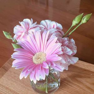 お花にハマって間もない頃、お気に入りだったガーベラとスプレーカーネーション♪ 切り戻しを覚えて、毎日お手入れして、短くなっても可愛い姿にキュンキュンしていました✨ 写真 ・ガーベラ(8日目) ・スプレーカーネーション(9日目)