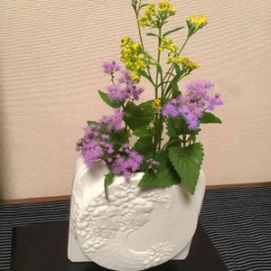 ユーパトリウム 💜 と、 女郎花 💛 です ❣️ 朝、庭から 詰みました ♡♡♡ 今日は 水曜日 、 週 の 真ん中に 来ましたね 💕