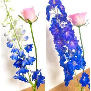 7/8(水) デルフィニウムが満開を迎えました! 最初と比べるとこの通り!圧巻の美しさ✨ このお花もドライフラワーに向くらしいので、ドライ挑戦します☺️