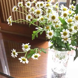 6/29(月) マトリカリア、スターチスは、テレビ横に加わりました(^ ^) 元気がなかったマトリカリアも、無事に水上げ出来たみたい✨ スターチスは花弁がパリパリしているけど・・もしかしてドライになっている?😳 それとも、こういう花なのかな。