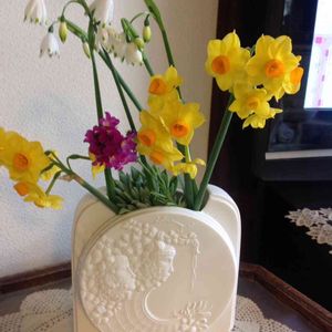 過去pic からです‼︎ 今日の花 : リナリア 🌸なんで、 1 本だけ 入ってたから.... 😅 ☆ スノーフレーク ☆ 房咲きスイセン ☆ リナリア です。