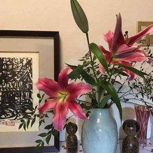 オリエンタル リリー🌺 この子は、ちょと 色が 変わってる..... 、 微妙な 色 してます‼︎ で、次々 咲き出したので、今のうちに もう、1 枚📸 パチっ と しときました❗️ ただ、相棒に 昨日、買った 染めた カスミソウと 合わせてみました。。 お昼は、お餅を 焼いて、有明のりに 包んで パクリ と しましたデス❗️ お餅って、便利💕 もちろん、お醤油 かけて、すぐ 食べれるぅ〰️‼️👍