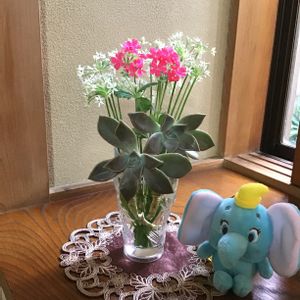 もう 1 つ、 出来ましたぁ🌸 ダンボ さんに 協力🤝してもらいました💕 ☆ニラの 花 ☆美女桜 ☆多肉 ( 朧月 ) です。