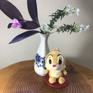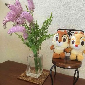庭で、今 ツルボ って言う、 この ピンクの 穂状の花🌸が いっぱい 咲いています。 ☆ ツルボ 🌸 ☆ ティー ツリー の 葉っぱ です。 チップ & デールに 椅子に 座っ て もらいましたよ🌸