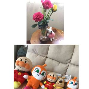 今日の 午後から 、長男夫婦のいる 神奈川県に 来ています。 お土産は、GS の お友達の アドバイス により、幼児の しばらくの 必需品の アンパンマン人形達 です。 お花💐は、買った薔薇🌹に、 ニューサイラン の 葉っぱを つけた 過去作 です。😁