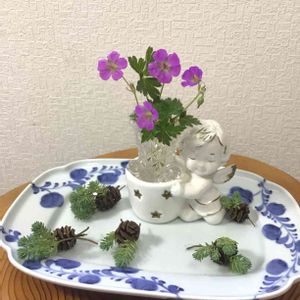 朝 町の公園で、ニチニチソウ🌺🌸 を、撮って いたら、すぐそばに メタコセイアの 並木が あって、 小さい、茶色い 松ぼっくり みたいな メタコセイアの 実が いっぱい 落ちていました。。 帰って来て、その実に 多肉のセダムを 差し込んで ちょっと 飾りに 使ってみました。 お花は、厳しい夏に なって、小振りに 咲く、ゲラニウム ロザンネイ です。(╹◡╹)