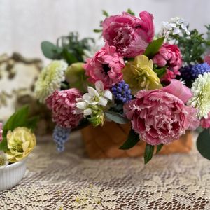 母のお友達が 今日に合わせて咲いたからと カサブランカとスカシユリも礼拝堂に飾ってくださっていました。 今日の日に合わせて開花するのを 心待ちにしてくださっていたそうです♡ 我が家の百合系のお花は間に合わず… 今からです😅 お別れ会後は持って帰ってねと、頂いたお花は実家母のコーナーに、母も喜んでいると思います。 何だかんだ懐かしい方々にもお会いして 後は兄弟姉妹でワイワイ 実家に帰ってからは皆んなで会食しながら思い出に話をいっぱいして帰って来ました。 ホッとした勢いで小さなアレンジとリース並べたのもついでに3連投ですみません😅