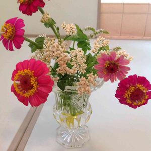 🌸💐🌿 今日、毛が フサフサした毛虫 なんか、投稿したので、お詫びです。 お口直し‼️.... きれいな お花💐の pic を 見てください。 庭の花からの、花生け です🌸。 添えの 葉っぱは、ティートゥリィーの 葉っぱです。