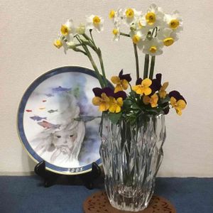 ニホンスイセンが 咲いています❗️ ビオラは 背が 低くて あまり切れない✂️のですが、ギリギリ切って 一緒に 生けてみました。。。