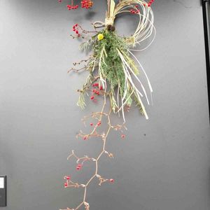 良い香りのレモングラスを使いスワッグ作りましたが デザイン的にお正月気分🎍🌅🎍になってしまったので 赤い実がカッコイイ枝を加えて飾りました🤗✨ 息子が棘と闘いながらGETしてくれました🍎 成長したなぁ🥺✨