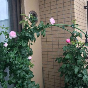 今日は涼しかったのが嬉しくて、ベランダ仕事に燃えてしまいました😅 初の試み、伸びて大きくなったモンクゥールとシャンテロゼミサト 2つのオベリスクを、カーブパイプ二本で繋いで、アーチを作ってみました❤️ うまくアーチが花でいっぱいになるといいのですが🍀