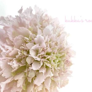 スカビオサの横顔。 中心の淡いグリーンから 外側に淡いピンクに広がってゆく このグラデーション この色の組み合わせ 大好きなんです。 金魚のひれのような形の 小さな花びらも ピンクのしべも 可愛いです(*´꒳`*)💕