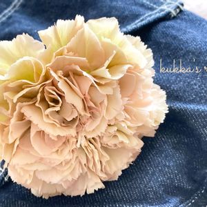 花遊び。 ピンク、ベージュ、グリーン… 色んな色が入り交じった ニュアンスカラーのカーネーション。 可愛すぎて、 ジーンズのポッケに入れちゃいました☺️🎶
