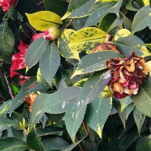 竹下性とは書かれていなかったけど、樹高2~3mって表記されてるし蕾もたくさんついてるからきっと竹下性でいいのかな。9月上旬にお迎えしたけ時より葉が半分くらい(ほぼ若い葉)紅葉?して落ちちゃった。肥料をあげ忘れてたのが原因なのかな…