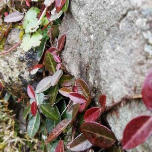 ✳️12月25日撮影✳️ いつもの散歩コース 石垣に小さな紅葉を見つけました🍁 テイカカズラです🍃