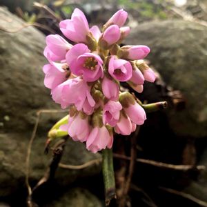 💐今日のお花 2💐 🍀野の花・ユキノシタ (雪の下) 🍀 開花途中の花びらを上から・・・ 雄しべの葯のピンク色が可愛い❤️ 【ユキノシタ (雪の下)】 《分布》本州~九州に分布する常緑の多年草。 《生育地》山間の湿地や岩上に群生する。 《別名》イドクサ、コジソウ