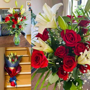 花友さんから 素敵な素敵なサプライズ プレゼント🌹バラの花束をもらうなんて人生で 初めてです。嬉しい~😂花友さん ありがとうございます🎉