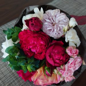 花束🌹💐 昨日は息子のピアノのレッスンだったので、薔薇好きなピアノの先生にお庭の薔薇で作った花束をプレゼントしました💞😊💞 めっちゃ喜んでくれて私も嬉しい😚💓