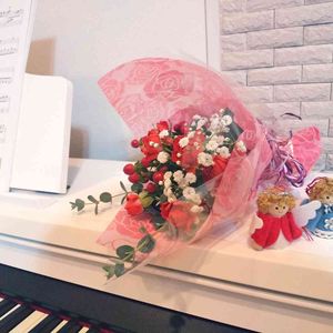 誕生日月だからっていつも行くお花屋さんで花束💐のプレゼントをされました☺️🎶 主人にさえも花束のプレゼントなんてしてもらってないからとっても幸せ〜💞 花束は最近趣味で始めたばかりのピアノの上へ。 (このピアノは給付金の10万円で買ったの😉) NHKの駅ピアノや空港ピアノに影響されて弾き始めたけど、家族のお耳汚しになってるけど本人は楽しくて仕方ない〜🎶 ミーハーな私です…😆