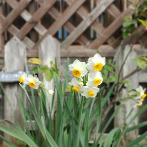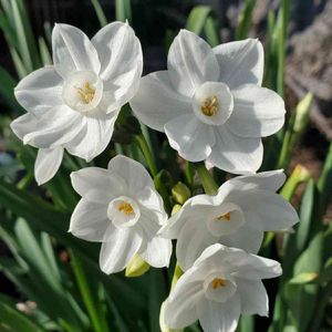 🐩🐾と朝散歩中 すいせん咲いています🎵 真っ白でキレイです❣️