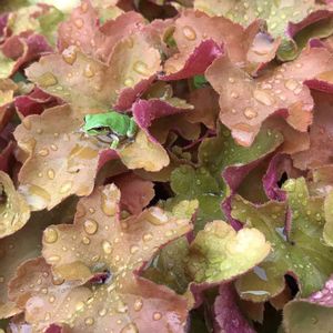 そしてライムライトの葉の上で同化しているアマガエル🐸 そろそろ名前でもつけようかな😆 毎日見てるしね! 直射日光がキツそうだったのでホースで霧状の水を撒いておきました🤩
