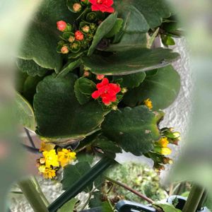 今朝のアマガエル君🐸🐸匹 園芸用クリップの上が安定して好きらしい❣️ 花が終わったカランコエ、風に飛ばされ葉っぱが折れても頑張って咲き出しました😊 肥料の力すごいですね😅 (今まで肥料あげずにほったらかしでした💦)