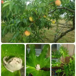 カリンの実がだいぶ大きくなりました😊 台風が来ると傷だらけになったり、落ちたり でもまたたくさん収穫できそうです😅 🐸餌をあげたら、飛びついて食べて、その後落ちそうになって必死にしがみついてました〜可愛い💕