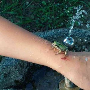 🐸🐸🐸🐸🐸🐸 6月9日、念願のアマガエル君、やっと自宅に連れて来ました😊 まだ尻尾が少し残ってる小さなアマガエル君❣️ 上手くジャンプ出来ずチョコチョコ歩いてるところゲット😆今回は1匹だけでした😅 自宅で水場に放して携帯取りに行ってる間に行方不明に💦残念ながら尻尾が残ってるところは撮れませんでした。 今朝、ブラックベリーのシュートをまとめていたら、なんと私の手にピョンと飛び乗って来たではありませんか、かわいい❤️❤️❤️❤️❤️ 3日目で尻尾もなくなりすっかり🐸らしくなってました 次はお友達を連れて来てあげなくては😊