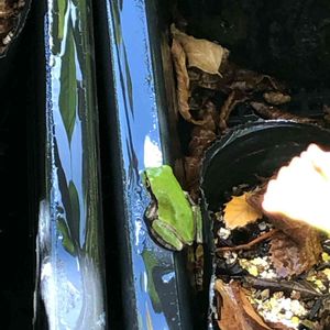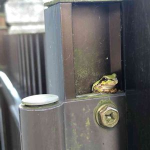 また挟まってる。 なんでアマガエルって狭いとこが好きなんだろ。