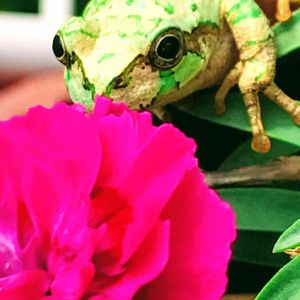 "龍使い"なカエルちゃん🐉🐸 果実が気になるんかね~❓️🤔 今日から10月ですね。 🐸達とも、もうすぐお別れな季節です🌾