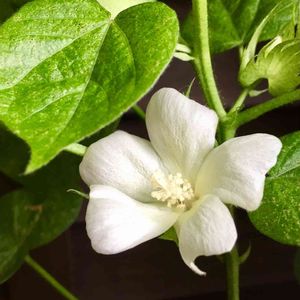 5月に種を蒔いた綿花。 とても成長がゆっくり。綿柎開の頃を過ぎて、どうなるのかな〜と思っていたところ👀 芙蓉に似たやさしい感じのお花です。 台風から守らなくちゃ!