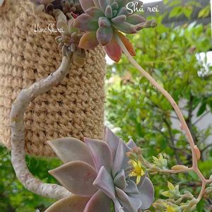台風が接近してきて☔になるようです。 朝の水やり終了✨ 熱い夏を編み編み籠で何とか過ごせました☺🍀