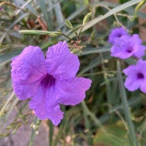 おはようございます☀️ 朝から厳しい陽射し🥵💦 今撮りです 💜柳葉ルイラ草💜 毎日こんな風に咲いてくれます🥰 宅地と畑の間のフェンス際に地植え🌱 〜花の命は短くて〜 半日で落ちちゃいます💦